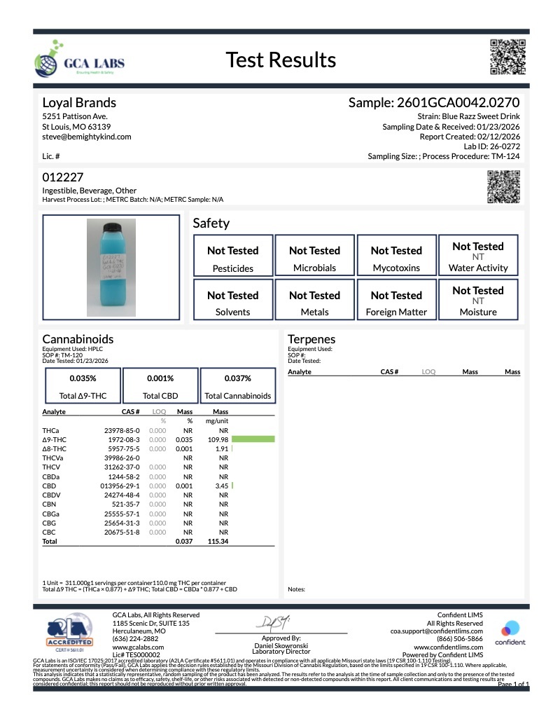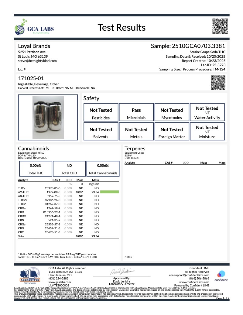 Below are links to third party lab test results for our current Mighty Kind products.